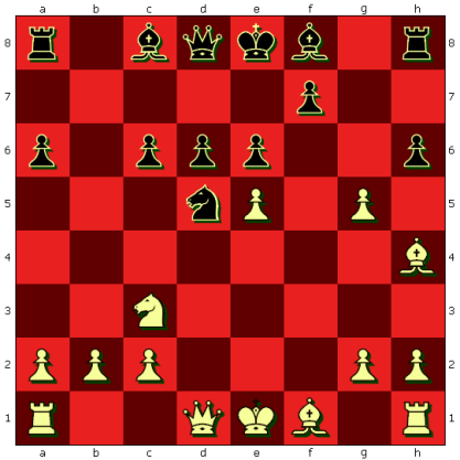 1. e4 c5 2. Sf3 d6 3. d4 cxd4 4. Sxd4 Sf6 5. Sc3 a6 6. Lg5 e6 7. f4 Sc6 (Diesen Zug von Schwarz, sehr schnell gespielt, hielt ich für einen Fehler, ist aber eine durchaus spielbare Variante)