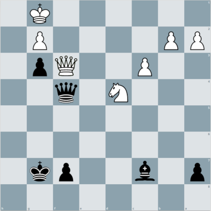 Weiß: Kg1, Df3, Sd4, g2, c3, b2, a2