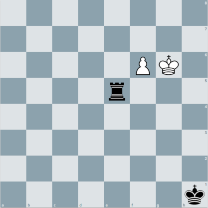 5. ... Te4! 6. f8T! (Der Clou! 6. f8D? scheitert an 6. Tf4+ 7. Dxf4 patt!)