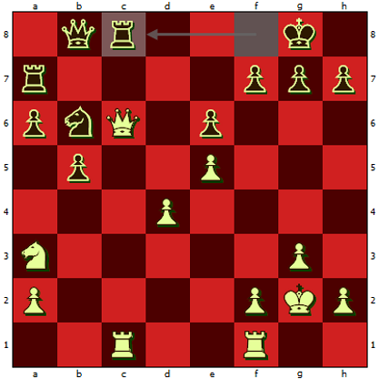 Schwerfiguren am DamenflügelKampf der Schwerfiguren. Mit seinem letzten Zug, ... Tf8-c8, glaubte Schwarz, die Situation zu klären. Warum war er damit schlecht beraten?