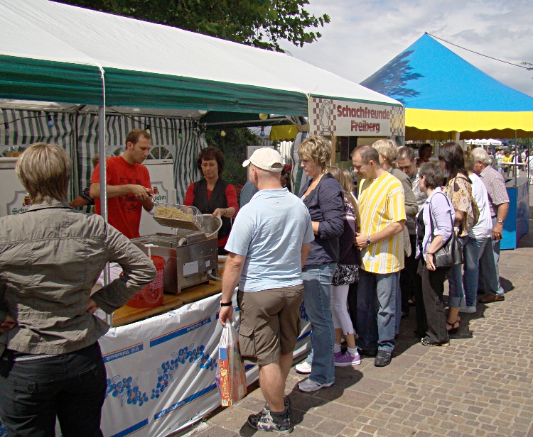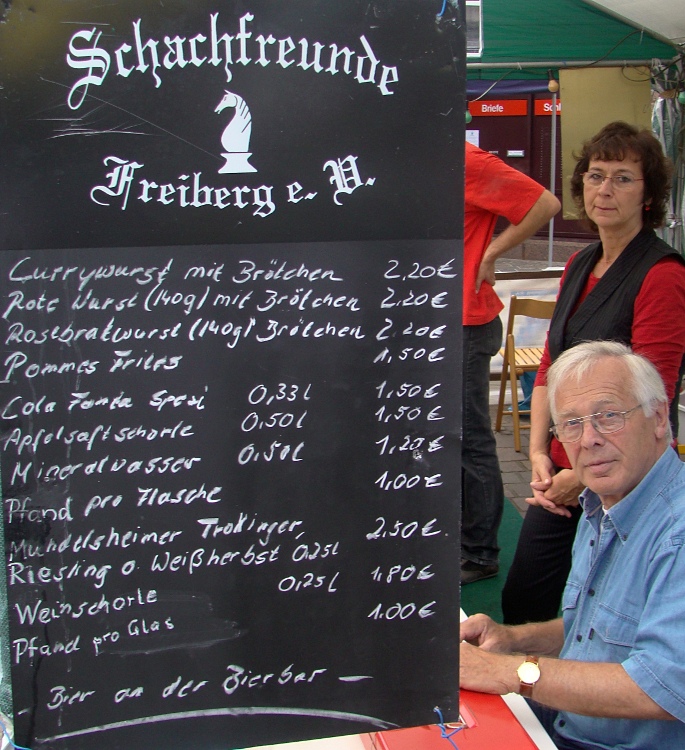 Das alljährliche Freiberger Bürgerfester ist auch für die Schachfreunde ein Höhepunkt im Vereinsleben. Die Vorbereitungen beginnen schon Wochen vorher: Da muss geplant, gerechnet, Material gerichtet, eingekauft und schließlich aufgebaut werden.