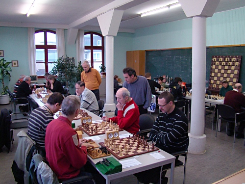 Wir verloren dort mit 3:5. Es punkteten Hermann Scholl, Christian Obergfäll, Michael Beckenkamp und Philipp Bächer mit je einem Remis. Lichtblick des Tages war die Partie von Martin Recker, die Martin nach spannendem Verlauf mit einem Sieg abschließen konnte.