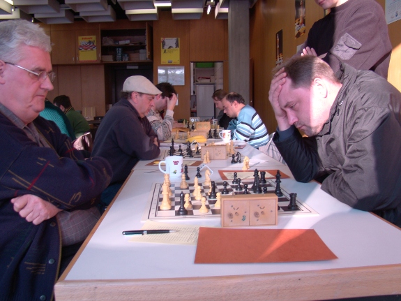 Sonnenschein an Brett 5. Links vorne Wolfgang Hägele.