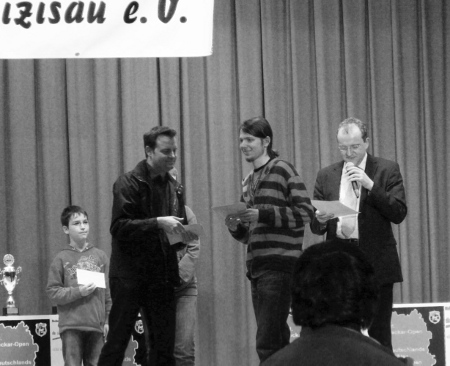 Am Ostersamstag schließlich waren alle erfolgreich: Andrej machte seinen zweiten Punkt, Matthias erspielte in den beiden Runden 1,5 Punkte, Carsten setzte sich mit ebenfalls 1,5 weiteren Punkten im C-Open durch und konnte seine Position unter den besten Spielern behaupten.