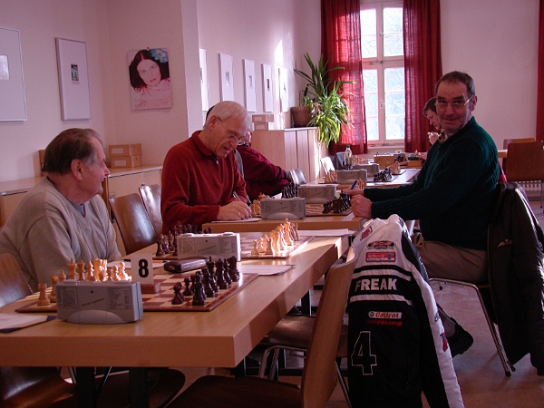 Der Mannschaftskampf an diesem interessanten Ort begann nicht schlecht. Unsere beiden jugendlichen Ersatzspieler an Brett 7 und 8, Michael Gruber und Carsten Wübbens, konnten beide ein schnelles Remis herausspielen. Für Michael Gruber war es der erste Einsatz überhaupt in der ersten Mannschaft.