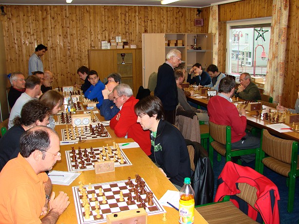 An Brett 3 ging sofort die erste Partie zu Gunsten von Wolfgang Hägele aus, dessen Gegner nicht erschien. Nachdem unsere Mannschaft mit einem Punkt schon in Führung lang, einigte sich Dragoljub Mihailovic (Brett 6) mit seinem Gegner in unklarer Stellung auf Remis. Auch David Knies (Brett 8) und Axel Lang (Brett 7) stellten sich in den Diensts der Mannschaft und nahmen die Remisgebote ihrer Gegner an, so dass unsere Führung auf 2½ zu 1½ Punkte ausgebaut wurde.