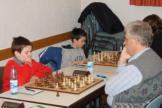Das erste Opfer jugendlicher Tammer Pfiffigkeit wurde Michael Beckenkamp an Brett 8. Im Mittelspiel einer scharf geführten Partie mit beiderseitigem Königsangriff fand sein Gegner eine effektvolle Kombination, die Michael wenige Züge später zur Aufgabe zwang. Etwas besser zog Christopher Walter an Brett 4 seinen Kopf aus der Schlinge - gegen den jüngsten Tammer Spieler. In scharfer Mittelspielstellung fand Christopher eine Zugwiederholung, die zum Remis führte.