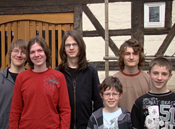 Leon Bührer, Carsten Wübbens, Maximilian Geißer, Jonas Haiber, Andrej Baric und Aron Ruoff vor der Tammer Kelter.