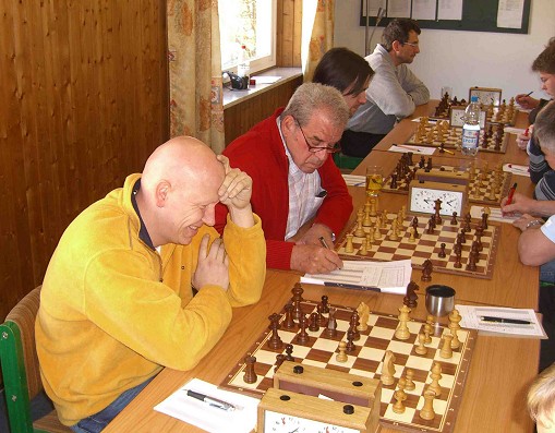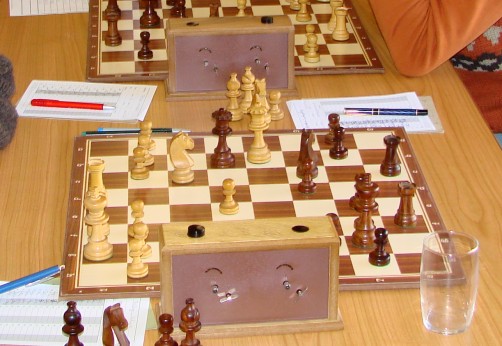 Den ersten Paukenschlag für Freiberg setzte einmal mehr Hans Mayer, der seinen Gegner gegen 11:45h matt setzte. Anschließend erreichte Birgit Dietsche ein Remis gegen ihren jugendlichen Gegner. Dieser hatte zwar einen Bauern weniger, konnte die Stellung im Endspiel jedoch so abriegeln, dass für Birgits Bauernmehrheit kein Durchkommen war.