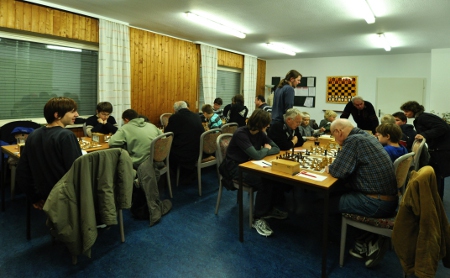 Im letzten Jahr gab es mehrfach Schwierigkeiten zwischen den Spielern, sich zu ihrem Match zu verabreden; einige Partien mussten für beide Beteiligte als kampflos verloren gewertet werden. Um dies zu vermeiden, spielen wir in diesem Jahr an festen Terminen. Dies hat auch den Vorteil, dass wir mehr Ruhe bei den Meisterschaftspartien haben, da die meisten mitspielen und somit nicht durch Blitzschach oder Unterhaltungen stören.